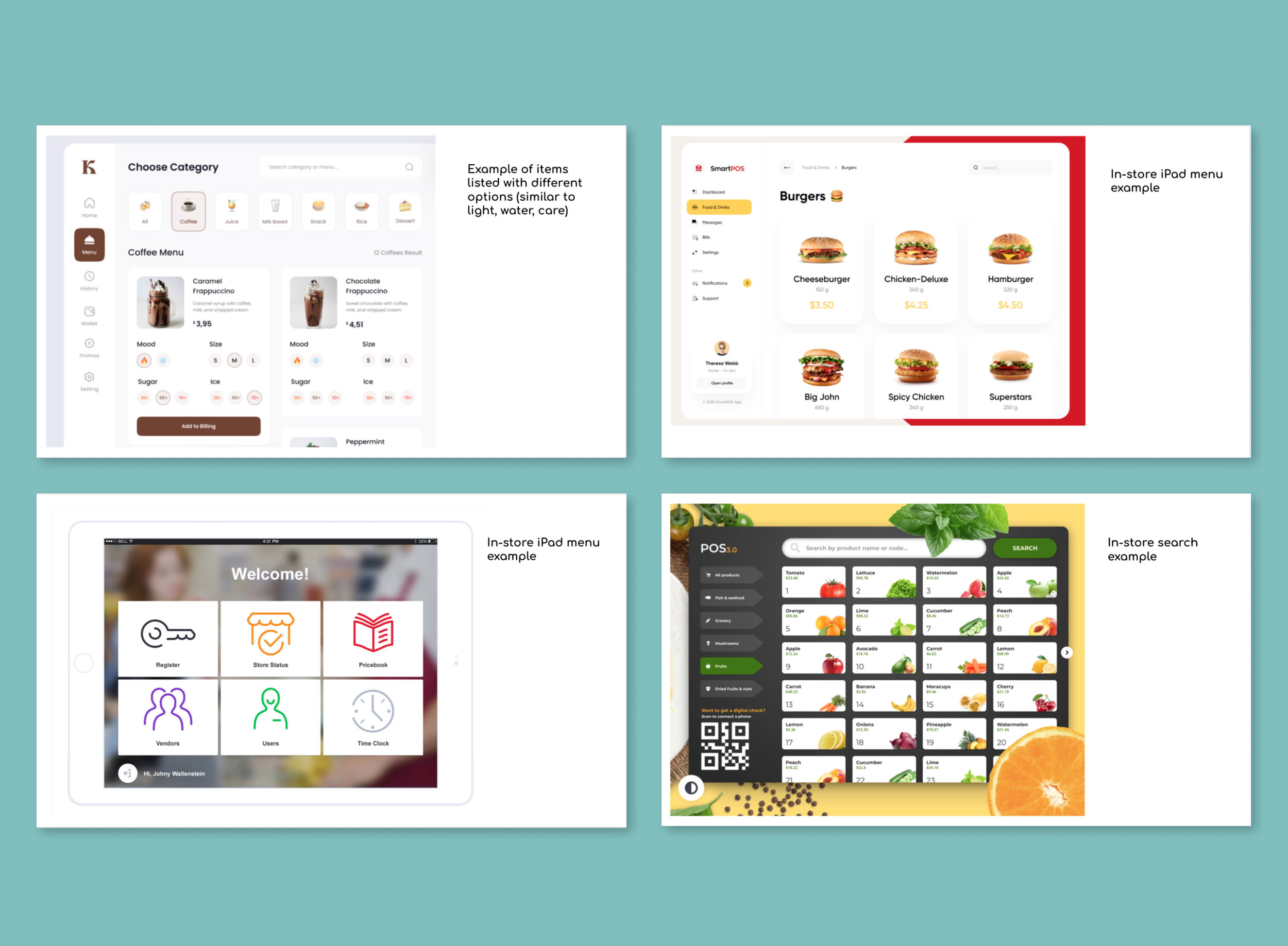 I started my designs by identifying some patterns from other in-store app or POS references.